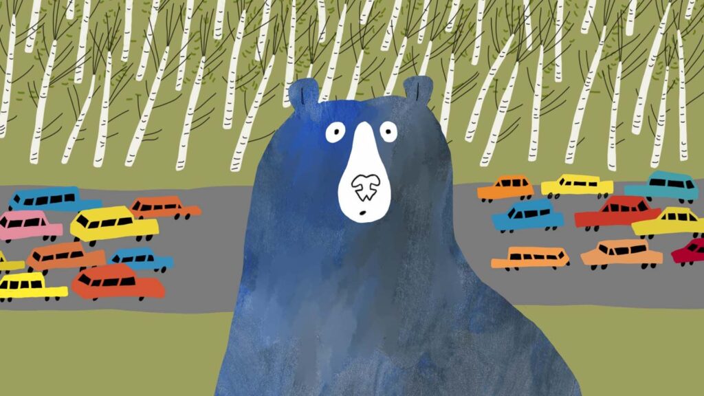 L’Ourse et l’oiseau de Marie Caudry (France, 26’) : Au cours de l’été, une ourse et un oiseau sont devenu·es inséparables. Quand l’automne arrive, il faut se rendre à l’évidence : bientôt l’ourse devra hiberner et l’oiseau devra migrer – l’une rêvera tandis que l’autre voyagera. L’heure des adieux approche… Mais on souffle alors à l’ourse une idée extraordinaire qui va changer son hiver.